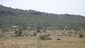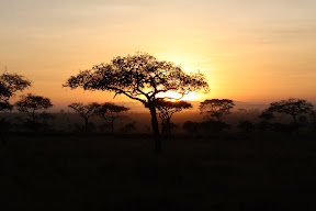 Vandaag hebben we een vroege start (althans vergeleken bij de andere dagen). Rond 05.30u staan we naast ons bed en een krap uurtje later zijn we al op pad. We hadden met Ombeni afgesproken de zonsopgang over de Serengeti te bekijken. Het aantal roofdieren dat we hier dagelijks zien, is ongelooflijk. Vanochtend is geen uitzondering. Hyena's en leeuwen in overvloed. Ook zien we een enorme groep olifanten (we gokken zo'n 150) en weer leeuwen in de boom. We drinken een kopje koffie (mét Amarula) bij het infocentrum en rijden dan richting het kamp. We frissen ons even op en lopen dan naar de hoofdtent voor de lunch. Tot onze verassing duikt Fonnary daar op! Hij geeft een kijkje achter de schermen. Ik loop met hem door het personeelskamp en hij legt uit dat alles op gas en kolen wordt klaargemaakt (behalve het brood, dat in een houtoven wordt bereid). We zijn erg onder de indruk van de kwaliteit van het eten en dat onder deze primitieve omstandigheden! We nemen afscheid van Fonnary en trekken ons terug voor een 'lazy afternoon' bij de tent. Het wordt al snel weer donker. Tijd voor het laatste vijfsterren, driegangen diner bij kampvuur op de Serengeti!